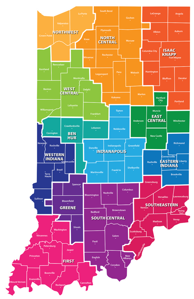 Use the map below to determine your Indiana component membership. Membership can be based on either your home or office location.